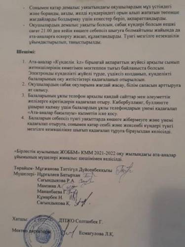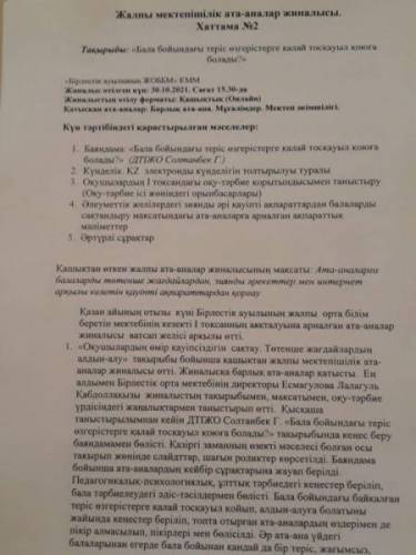 Жалпы мектепішілік ата-аналар жиналысы. Хаттама №2