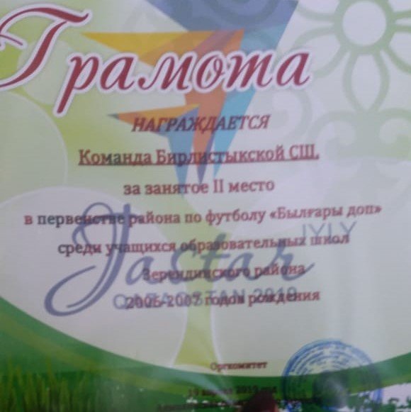 Бірлестік орта мектебі аудандық футбол ойынынан 2-орын иеленді