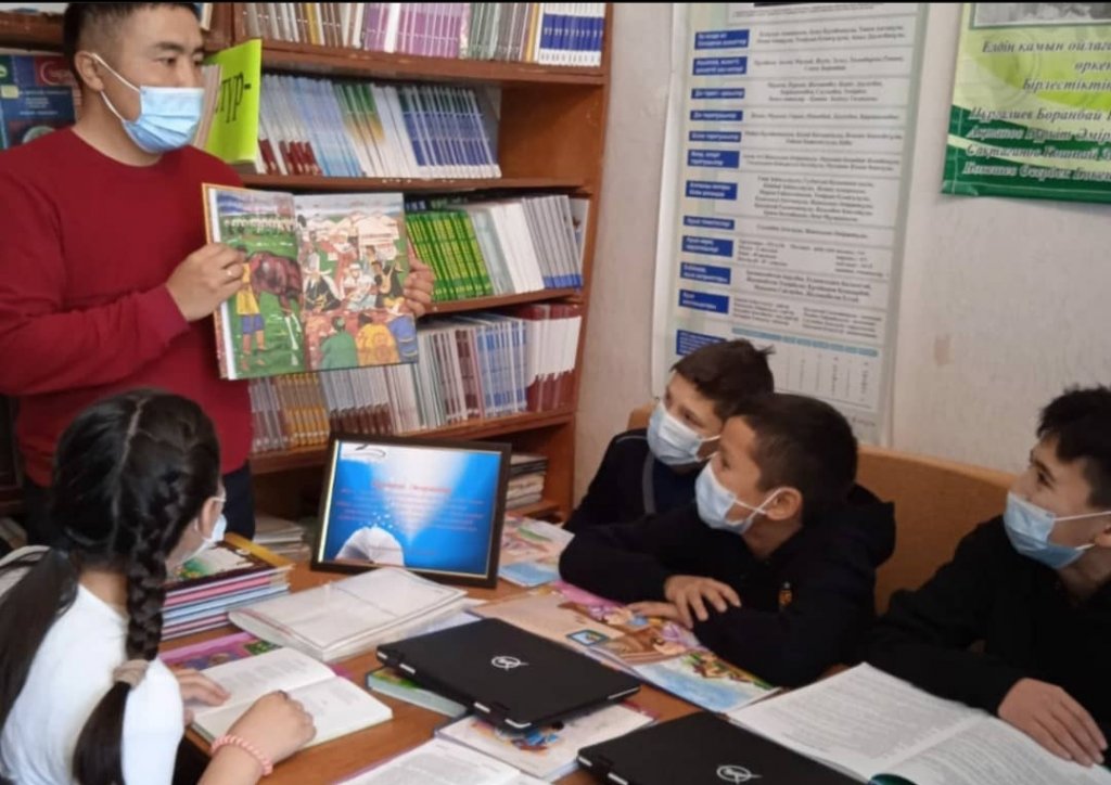 6 сынып оқушылары "Оқуға құштар мектеп" жобасы бойынша кітапханаға келіп көркем әдебиеттер оқып, бір-бірлерімен оқыған кітаптарының мазмұндарымен бөлісуде.